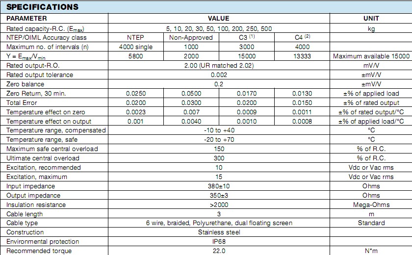 低姿態(tài),高精確度和密封性,使該負載細胞非常適合于應用,如低輪廓平臺,稱重和包裝