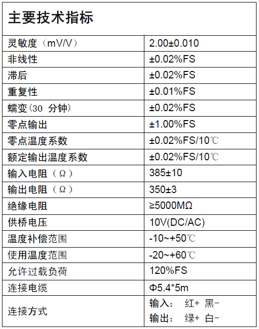 靈敏度(mV/V) 2.00±0.010