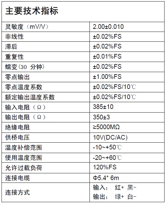 靈敏度(mV/V)2.00±0.010