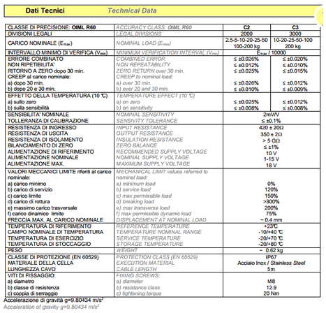 意大利AEP F1系列稱重傳感器所有量程如下: