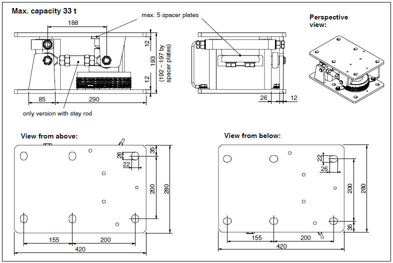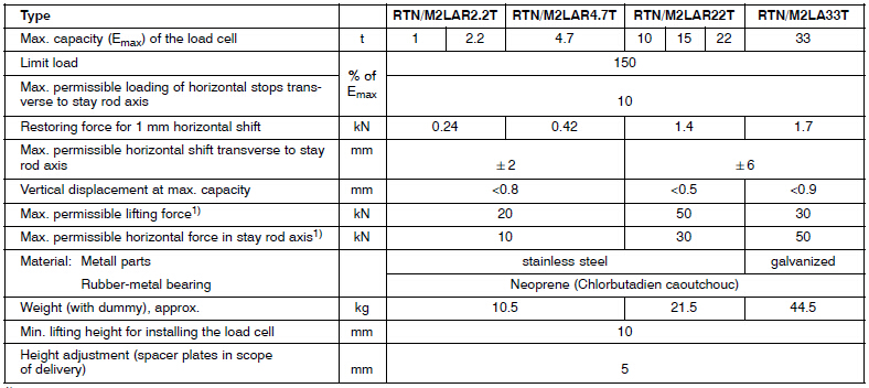 RTN 稱重模塊專門用于安裝RTN稱重傳感器,可以減少安裝費用,并且非常方便,模塊提供過程稱重的所有功能和進(jìn)行重力水平測量。這里有兩種不同的型號,用于不同的應(yīng)用場合: 塑鋼支撐 [RTN / M2(L)A] 用于 balancing horizontal movements 和擺支撐[RTN / M2(L)B] 用于非常小負(fù)載情況下,并有極高的精度。所有的 RTN 稱重模塊都帶有傳感器替代物,因為經(jīng)常用于工業(yè)環(huán)境,會破壞高精度傳感器. 這樣可以讓用戶使用替代傳感器進(jìn)行定位,直到系統(tǒng)真正運行時才使用真正的傳感器。RTN 稱重模塊內(nèi)置反升力裝置和水平限位. 可選的支撐桿. 所有的 HBM 稱重模塊都可以用于貿(mào)易秤,并符合 WELMEC 2.4 標(biāo)準(zhǔn) (歐洲貿(mào)易度量衡). 最新的 RTN 稱重模塊符合 DIN 18800 標(biāo)準(zhǔn),并帶有獨立監(jiān)督組織頒發(fā)的證書(TüV) 。額定負(fù)載 1 t / 2.2 t / 4.7 t / 10 t / 15 t / 22 t / 33 t