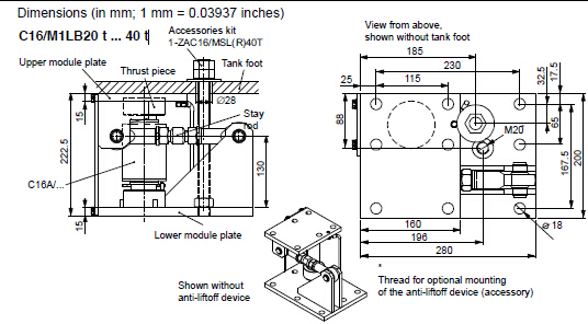 C16/M 應(yīng)用于 20 t ... 400 t C16 稱重傳感器的模塊,無(wú)論是建筑工業(yè)罐體, 煤倉(cāng)還是氣體或液體罐, C16 稱重模塊的特殊特性都可以滿足以上應(yīng)用。所有的稱重模塊,無(wú)論是電鍍鋼還是不銹鋼材料,均內(nèi)置支撐桿,用于 吸收水平力;離地保護(hù)裝置包含在附件中;C16/M稱重模塊的量程范圍為 20 t 到 400 t, 這意味著罐體重量可以達(dá)到 1,200 t,按照 DIN 18800,所有的機(jī)械數(shù)據(jù)必須進(jìn)行相關(guān)的檢查認(rèn)證。