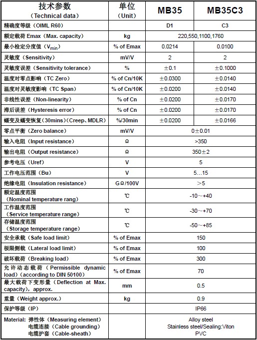 傳感器MB35C3/2.2t德國HBM產(chǎn)品技術(shù)參數(shù):