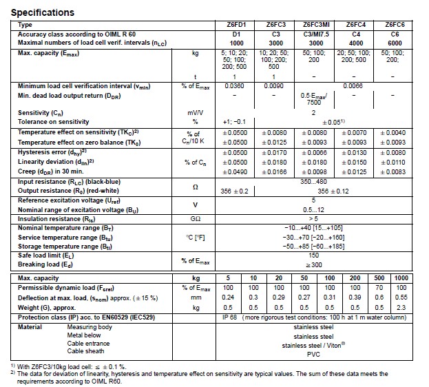 Z6 稱重傳感器有多種不同的型號(hào) (Z6FD1, Z6FC3, Z6FC3MI, Z6FC4, Z6FC6) 并有不同的精度等級(jí).