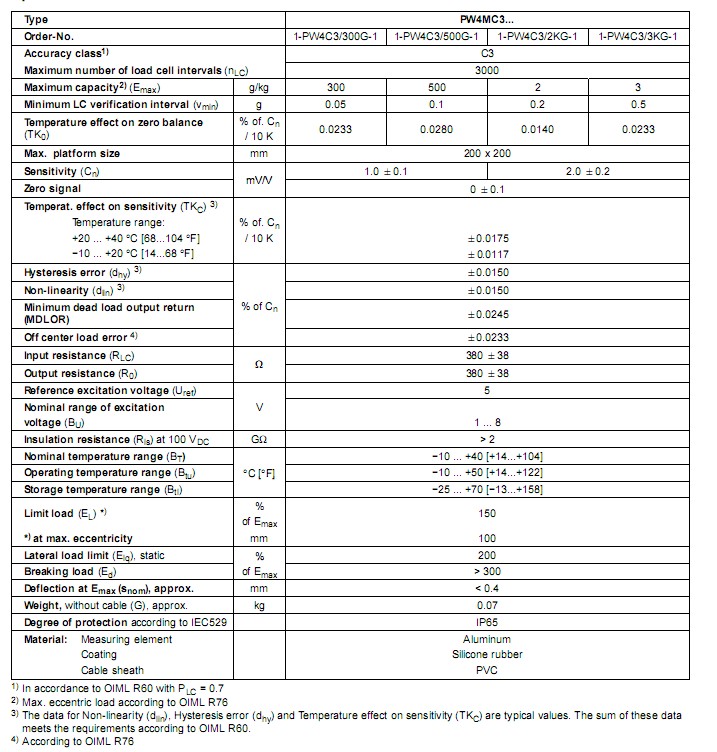HBM PW4C3/2KG稱(chēng)重傳感器技術(shù)參數(shù)圖:
