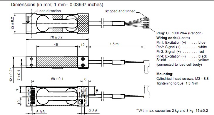 Nominal load 0.3 kg / 0.5 kg / 2 kg / 3 kg