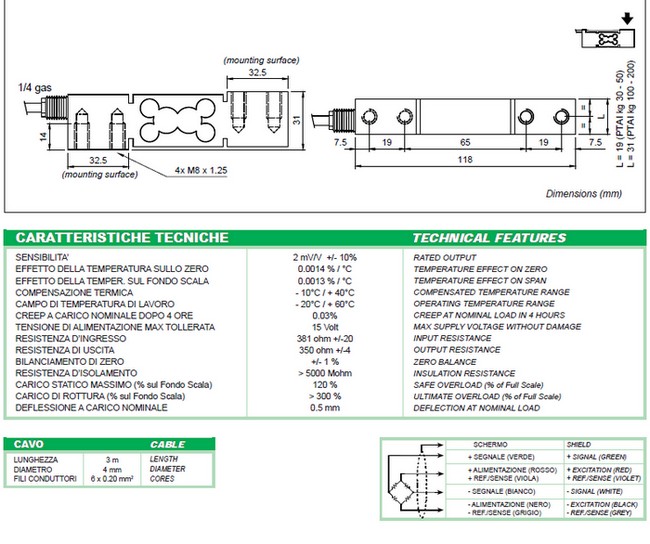 PTAI-30kg意大利laumas傳感器PTAI-30kg稱重傳感器量程: