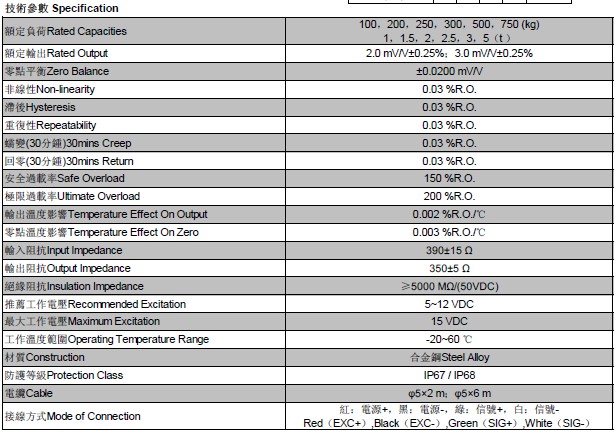 臺灣Mavin NS2稱重傳感器技術(shù)參數(shù):