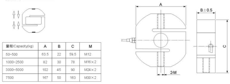鋼制S型稱重傳感器,測量方式為剪切應(yīng)力測量,承受拉、壓外力均可,輸出對(duì)稱性好,結(jié)構(gòu)緊湊,安裝方便