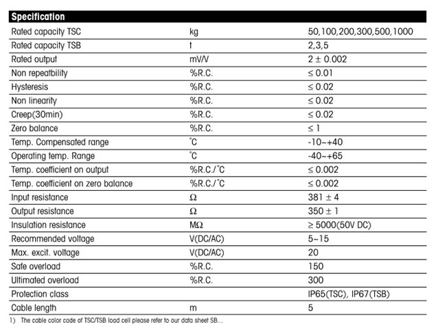 注:TSB-2000是梅特勒-托利多傳感器中容量為2000KG。所以量程為2000KG,那么型號就是TSB-2000。以止類推得到TSB系列的所有型號。