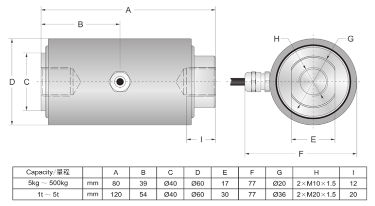 量程可選:5,10,20,30,50,100,200,250,500kg,1t,2t,3t,5t