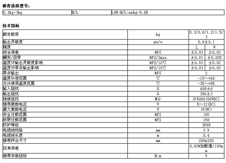 單點式稱重傳感器L6B、L6D、L6E、L6E3、L6F、L6G、L6J、L6H5: L6N-C3-30kg L6C-C3D-5KG-2B L6D-C3D-20KG-0.8B L6D-C3-20kg-0.4B L6D-C3-20kg L6F-C3-250KG-3B6 L6F-C3-250KG-3B6 B3G-C3-250kg-6B H3F-C3-2.0t-6T H3-C3-50KG-3B-C H8C-C3-2.0T-4B1 H8C-C3-2.0T-4B L6E3-C3-100KG-3G HPS-12KG FD-3-24V010