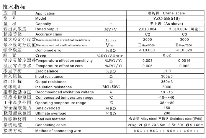 廣測GUANGCE YZC-516稱重傳感器主要特性