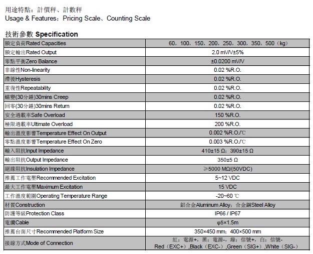 輸入靈敏度:1-2mV/V