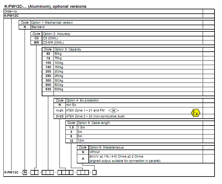 PW12C稱重傳感器系列所有型號(hào):