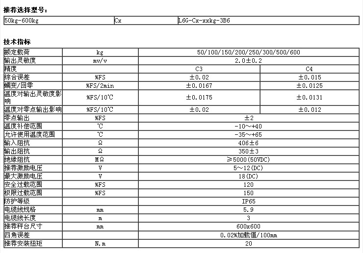 ◆L6G稱重傳感器可滿足50kg-600kg 量程范圍內(nèi)的精確測(cè)量。