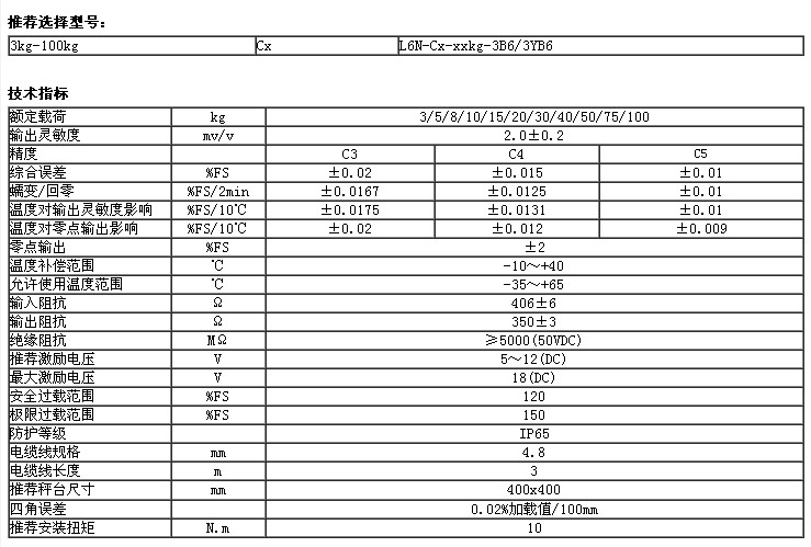 L6F-C3-50KG-3B6,L6F-C3-100KG-3B6,L6F-C3-150KG-3B6,L6F-C3-200KG-3B6,L6F-C3-250KG-3B6,L6F-C3-500KG-3B6,