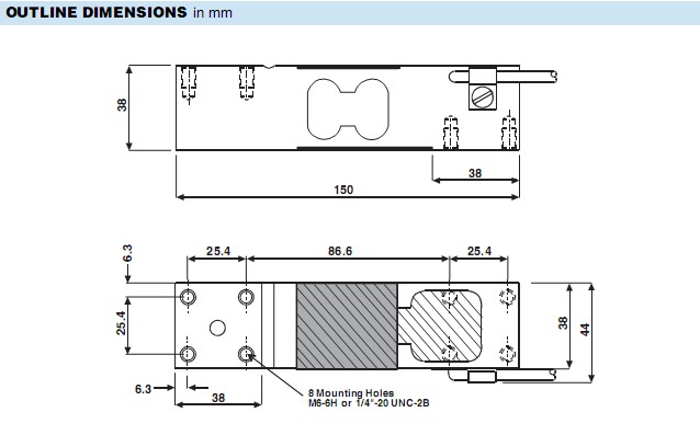 美國LSI SD42-100kg稱重傳感器規(guī)格尺寸: