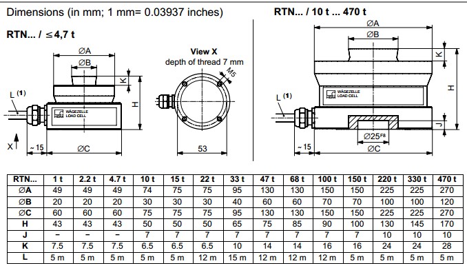 RTN稱重傳感器的額定量程從1t到470t可以為平臺秤,汽車衡和過程