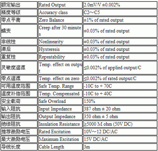 美國(guó)OAP DEE稱重傳感器技術(shù)參數(shù):