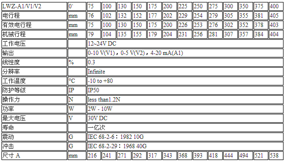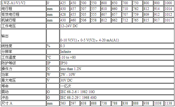 德國(guó)VOLFA直線位移傳感器LWZ系列所有量程如下: