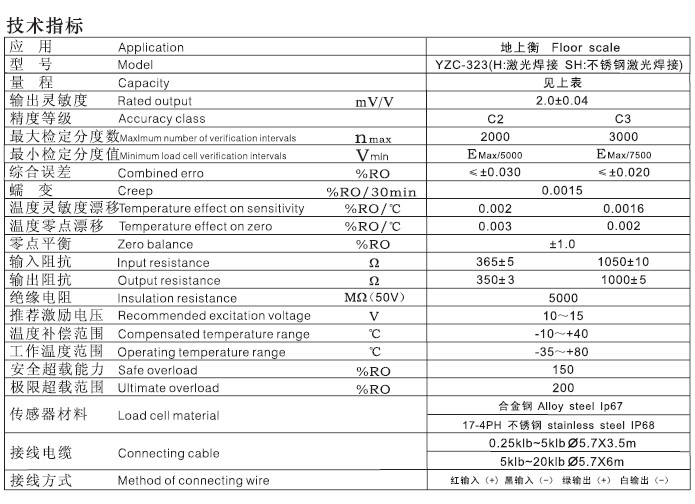 廣測GUANGCE YZC-323稱重傳感器主要特性