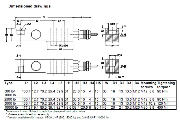 這款力傳感器還可用于測量靜態(tài)拉力及壓式力。彎梁式稱重傳感器通過線纜一側(cè)的兩個緊固孔安裝。而在線纜的另一側(cè),通過通孔或盲孔將力引入,垂直作用于測力傳感器的中軸線。