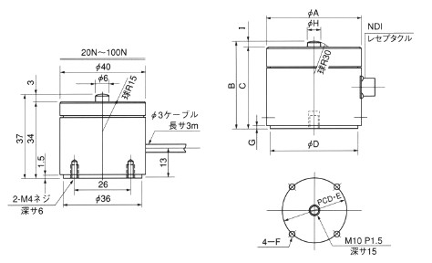靈敏度:……………………………………… 2mV/V±1%(20N~100Nは1mV/V)